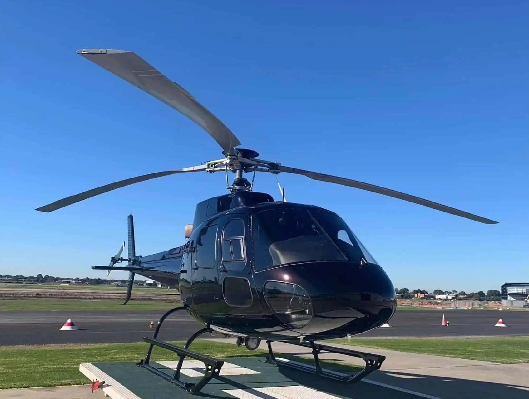 A quiet, spacious single-engine helicopter perfect for scenic flights and efficient point-to-point transfers.